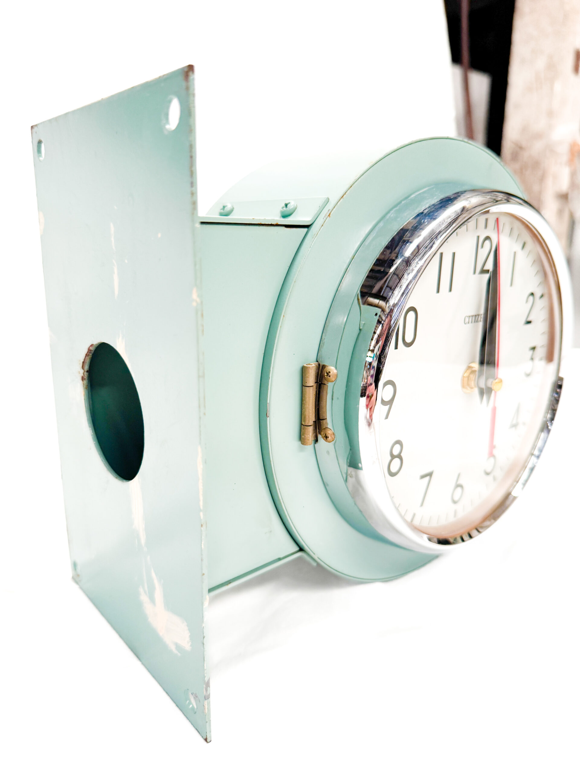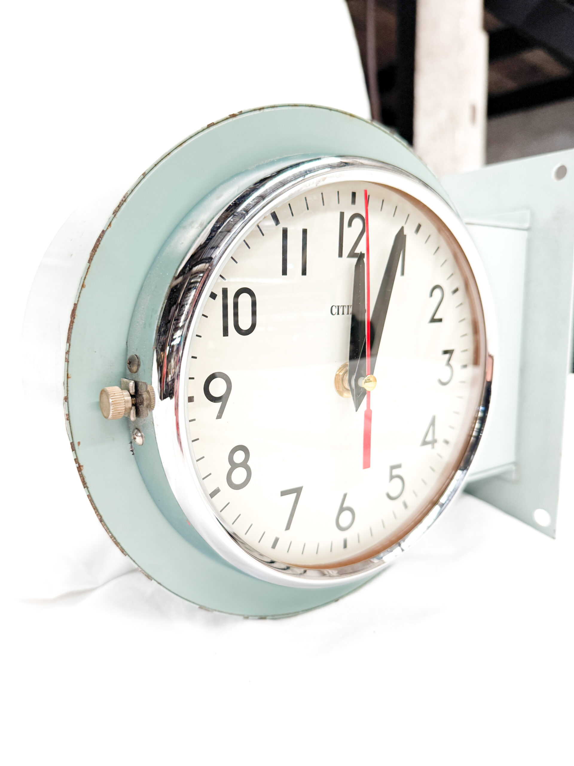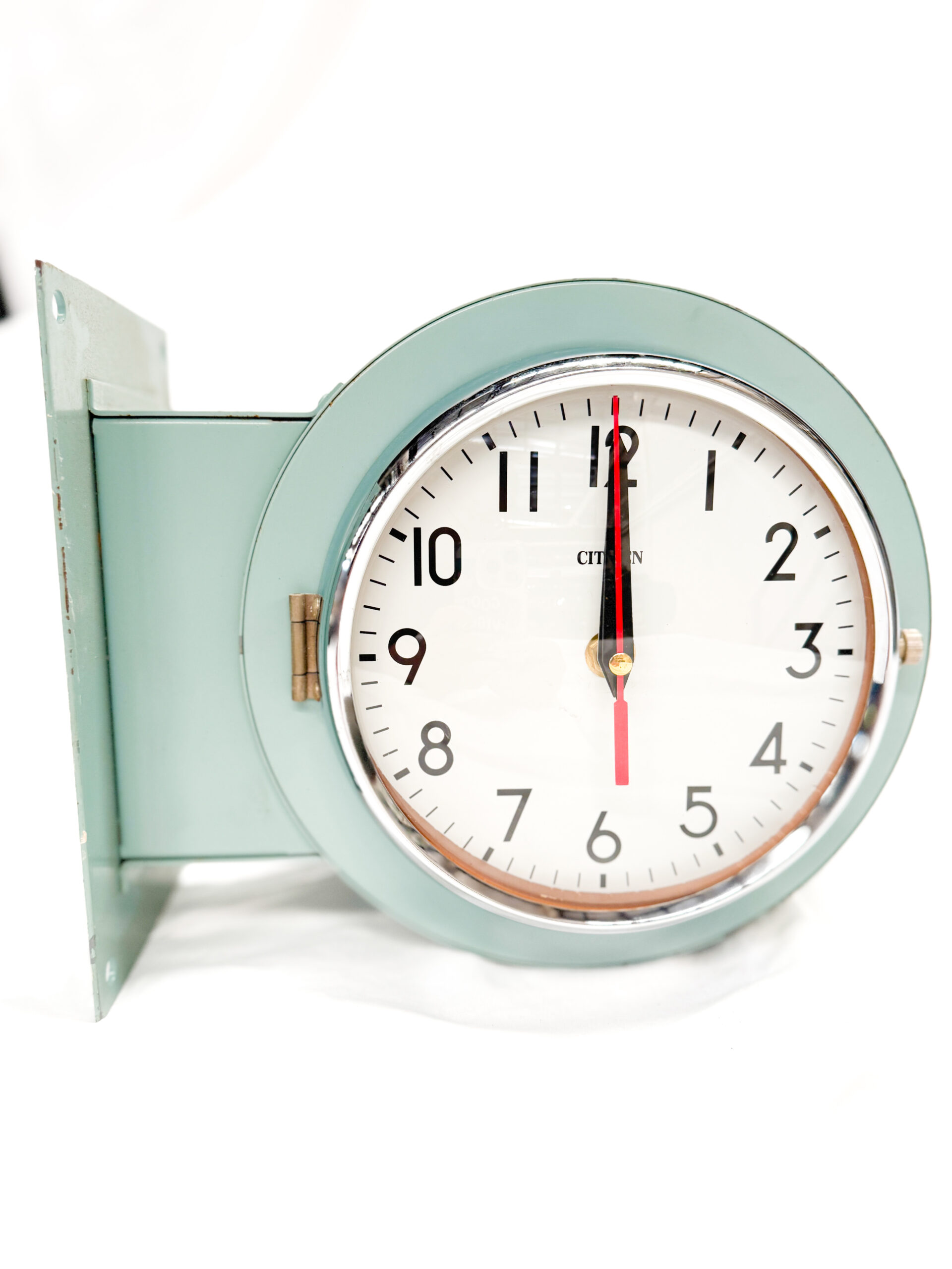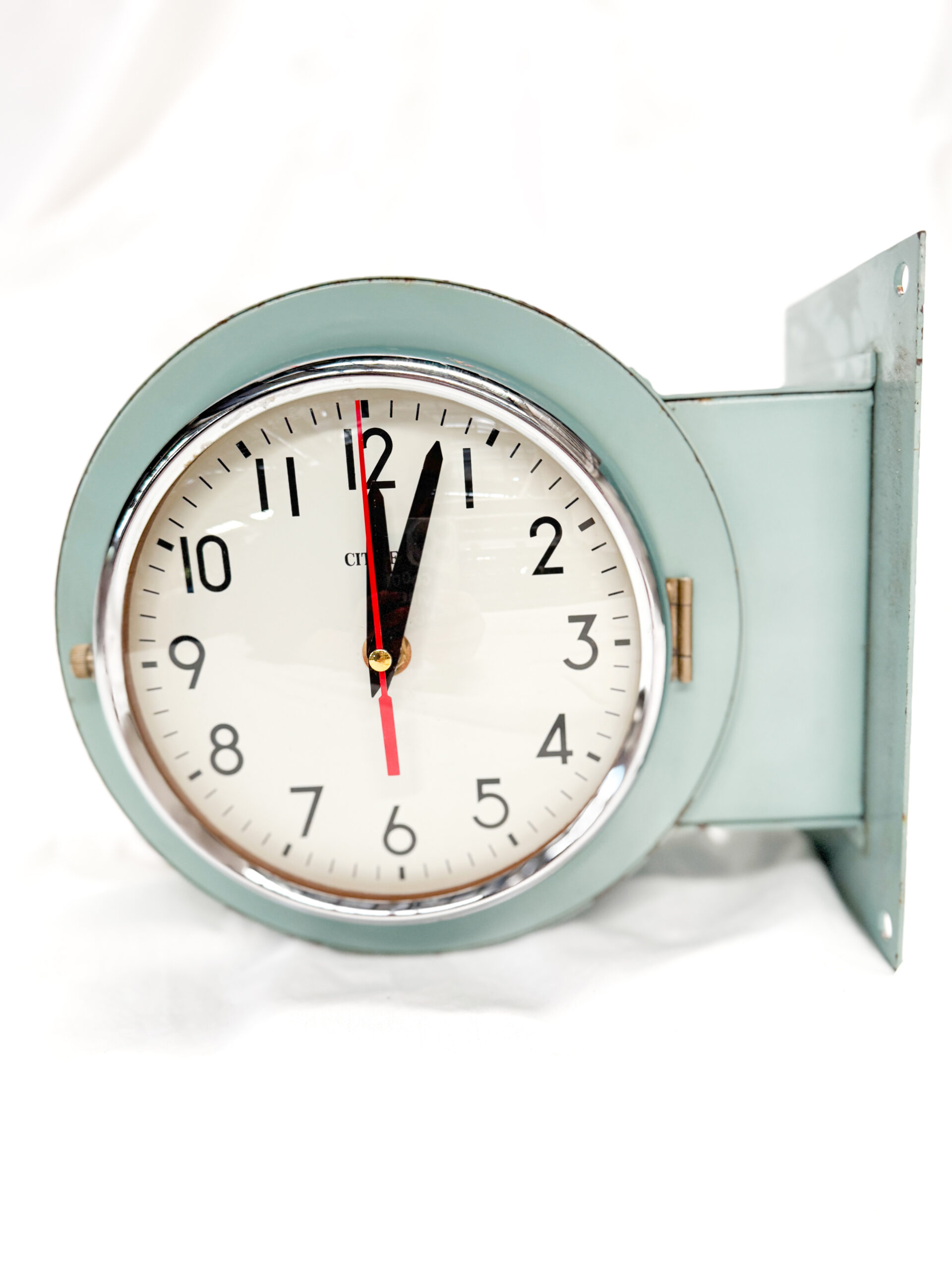 นาฬิกา Citizen Double Side Clock ดีไซน์แบบสองหน้าที่พบเห็นได้ตามทางเดินอาคาร สถานี หรือพื้นที่สาธารณะในยุคคลาสสิก ออกแบบให้สามารถมองเห็นเวลาได้จากทั้งสองทิศทาง เหมาะสำหรับการติดตั้งยื่นออกจากผนัง ช่วยให้การอ่านเวลาชัดเจนไม่ว่าจะเดินผ่านจากด้านใด